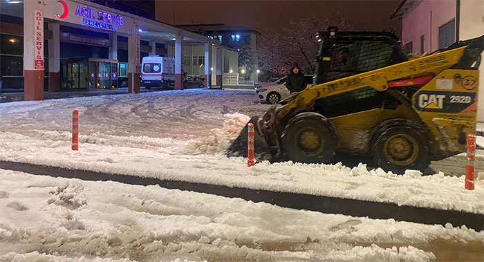 Belediye bağlı ekipler yayalar ve sürücülerin zor anlar yaşamaması için ana arter caddeler, sokaklar, hastane ve sağlık ocakları bahçeleri ve yaya kaldırımlarında kar küreme, solüsyon çalışması yaptı.