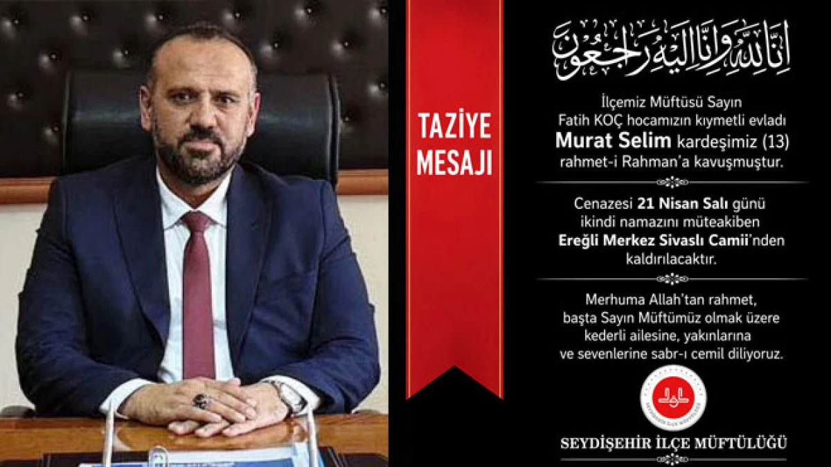Seydişehir Müftüsü Fatih Koç, 13 yaşındaki evladını kaybetti